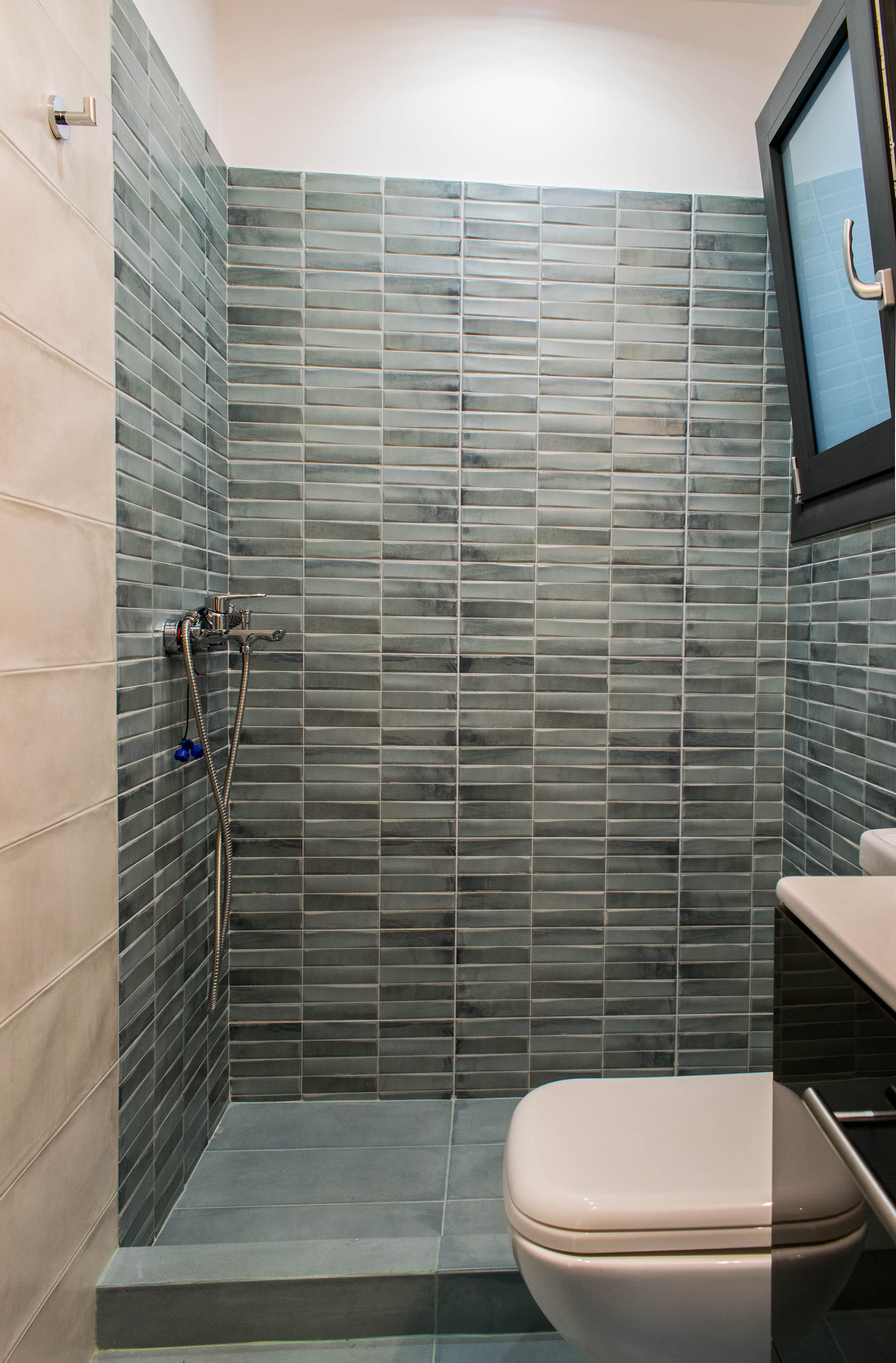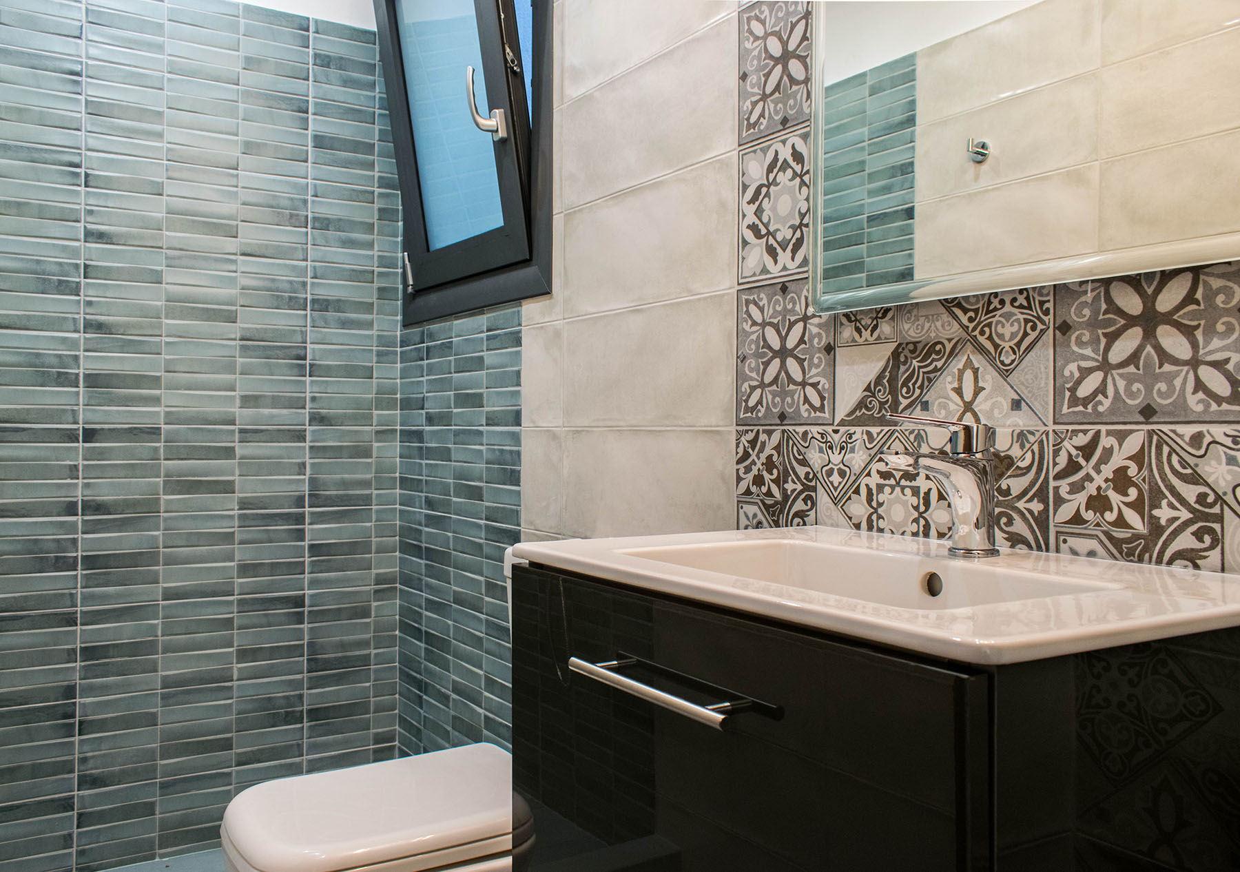 Ανακαίνιση μπάνιου από την εταιρεία Ψύχας Τεχνική. Το έπιπλο μπάνιου, το οποίο κατασκευάζεται από την εταιρεία Ψύχας Τεχνική, είναι από μελαμίνη, με συρτάρια με φρένο και νιπτήρα από πορσελάνη διαστάσεων 0,90x0,45cm. Επιλέχθηκε οροφή γυψοσανίδας.